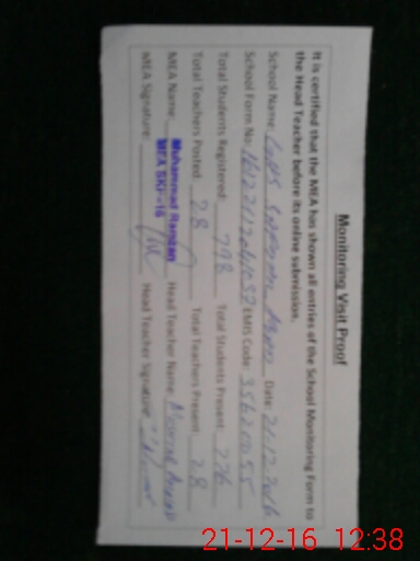 | Certified that this School was Inspected by the Undersigned MEA/DMO Today and the Information Stated Above is as Per Record. | |||||