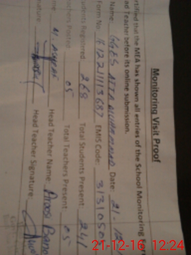 | Certified that this School was Inspected by the Undersigned MEA/DMO Today and the Information Stated Above is as Per Record. | |||||