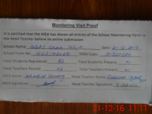 | Certified that this School was Inspected by the Undersigned MEA/DMO Today and the Information Stated Above is as Per Record. | |||||