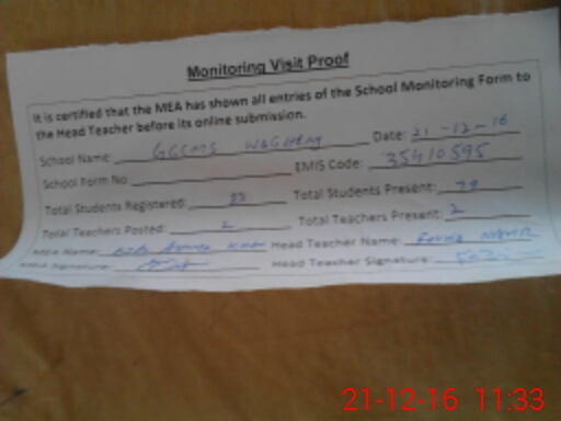 | Attendance Register | Head Teacher | MEA with School | Visit Proof |