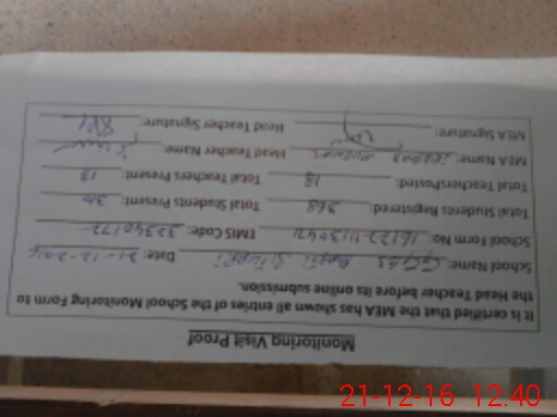 | Attendance Register | Head Teacher | MEA with School | Visit Proof |