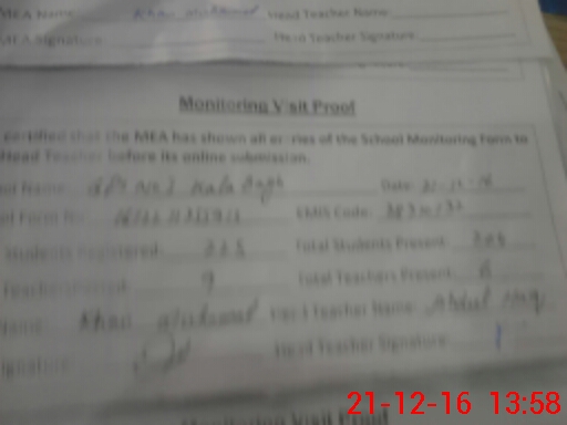 | Certified that this School was Inspected by the Undersigned MEA/DMO Today and the Information Stated Above is as Per Record. | |||||