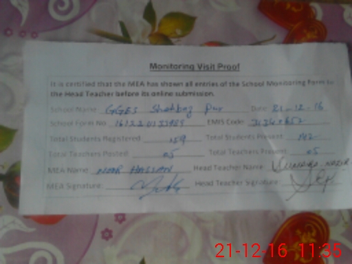 | Attendance Register | Head Teacher | MEA with School | Visit Proof |