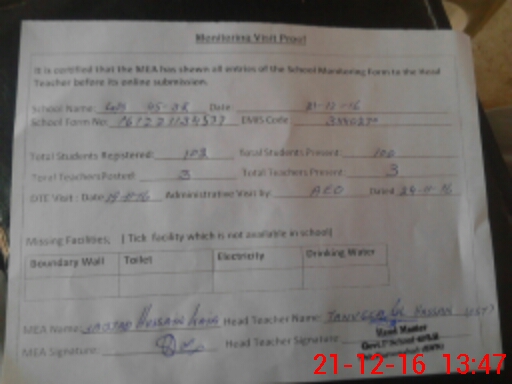 | Certified that this School was Inspected by the Undersigned MEA/DMO Today and the Information Stated Above is as Per Record. | |||||
