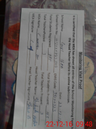 | Certified that this School was Inspected by the Undersigned MEA/DMO Today and the Information Stated Above is as Per Record. | |||||