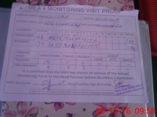 | Attendance Register | Head Teacher | MEA with School | Visit Proof |