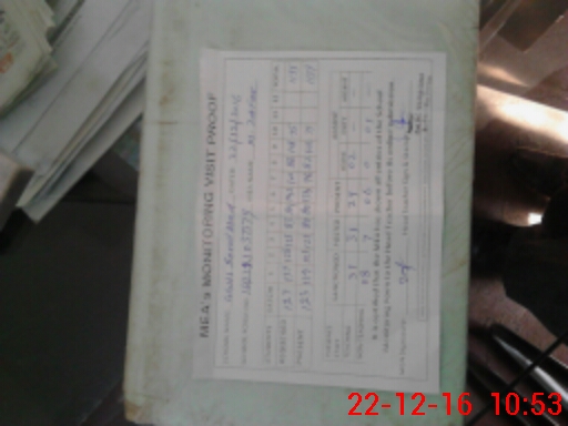| Monitoring Date: 22-12-2016 | Start Time: 22-12-2016 09:54 AM | End Time: 22-12-2016 11:02 AM | Name of MEA: Mu**** Za**** (S**** | |