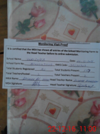 | Certified that this School was Inspected by the Undersigned MEA/DMO Today and the Information Stated Above is as Per Record. | |||||