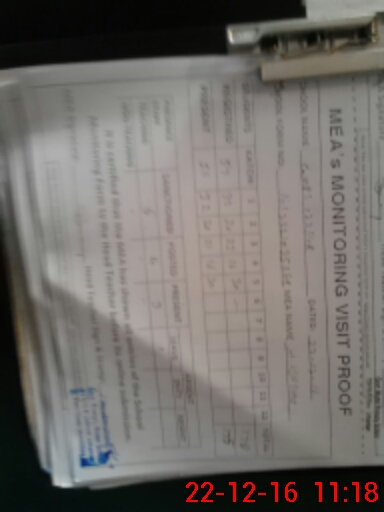 | Attendance Register | Head Teacher | MEA with School | Visit Proof |