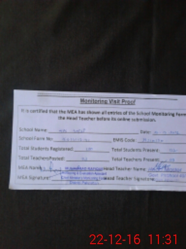 | Certified that this School was Inspected by the Undersigned MEA/DMO Today and the Information Stated Above is as Per Record. | |||||
