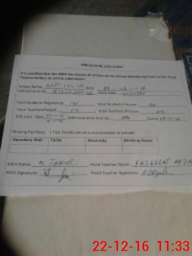 | Attendance Register | Head Teacher | MEA with School | Visit Proof |