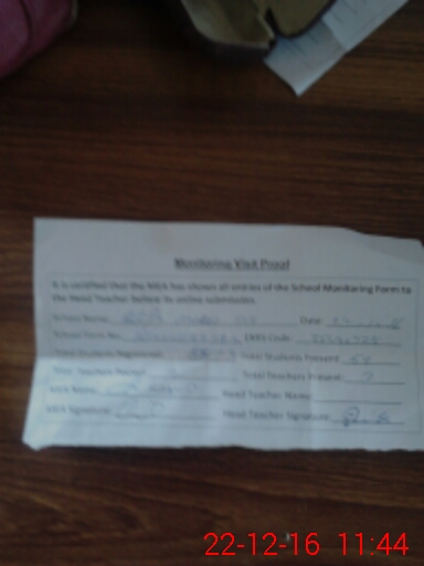 | Attendance Register | Head Teacher | MEA with School | Visit Proof |