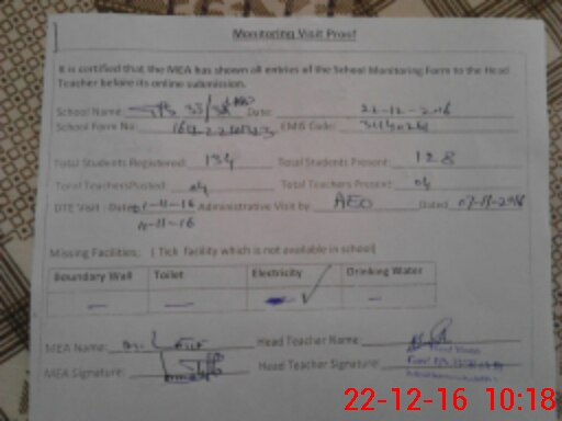| Certified that this School was Inspected by the Undersigned MEA/DMO Today and the Information Stated Above is as Per Record. | |||||