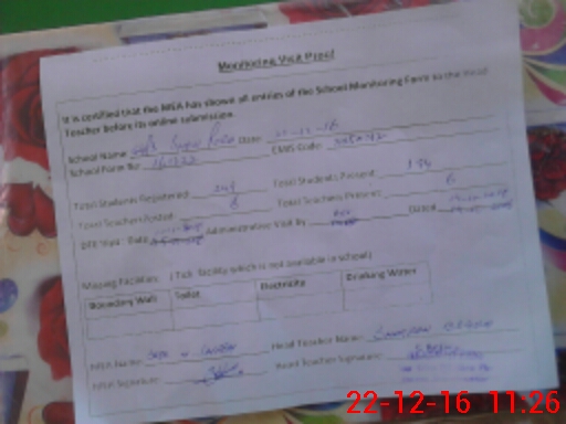 | Attendance Register | Head Teacher | MEA with School | Visit Proof |