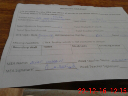 | Certified that this School was Inspected by the Undersigned MEA/DMO Today and the Information Stated Above is as Per Record. | |||||