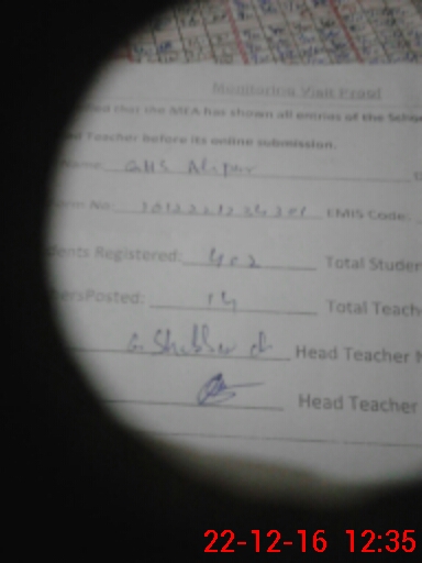 | Name: AF**** HU**** Designation: (School Headmaster's/Headmistress's) HEADMASTER Phone/Cell Number: 03**** |
