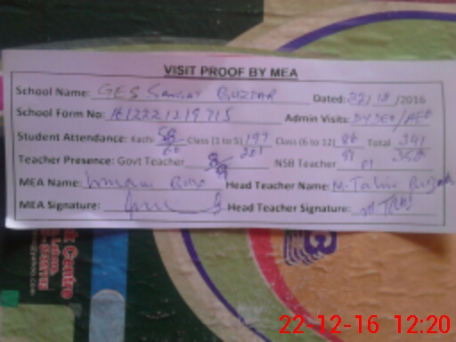 | EMIS Code: 32430044 | Name of School: GHS SANGAT BUZDAR | |||