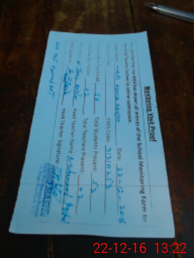 | Attendance Register | Head Teacher | MEA with School | Visit Proof |