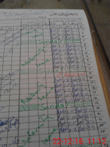 | Leave | Duty | Absent | Maternity | Medical | Ex- Pak |