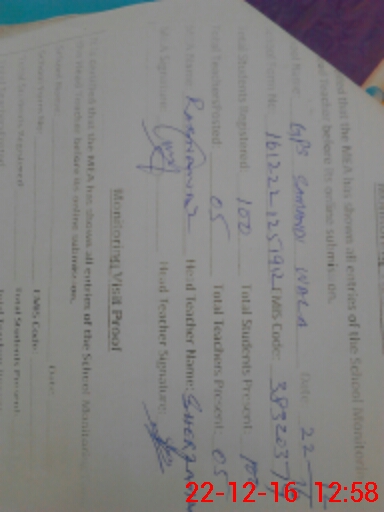 | Monitoring Date: 22-12-2016 | Start Time: 22-12-2016 12:36 PM | End Time: 22-12-2016 12:59 PM | Name of MEA: Mu**** Az**** Ul**** Kh**** Ni**** (R**** | |