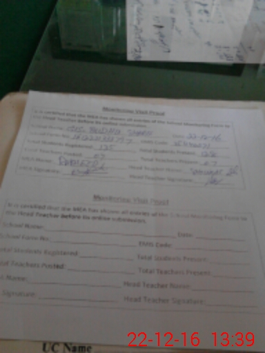 | Attendance Register | Head Teacher | MEA with School | Visit Proof |