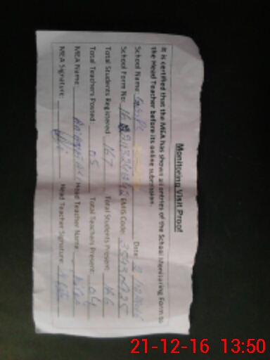 | Attendance Register | Head Teacher | MEA with School | Visit Proof |