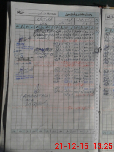 | CNIC | Full Name | Designation | R/C | Absence During Last Calender Month |