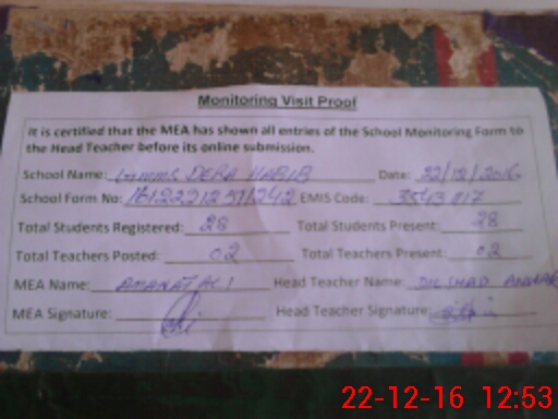 | EMIS Code: 35431117 | Name of School: GPS DERA HABIB MANANWALA | |||
