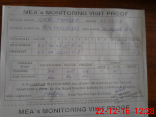 | EMIS Code: 36410422 | Name of School: GMPS TANGRA, SARAI SIDHU | |||