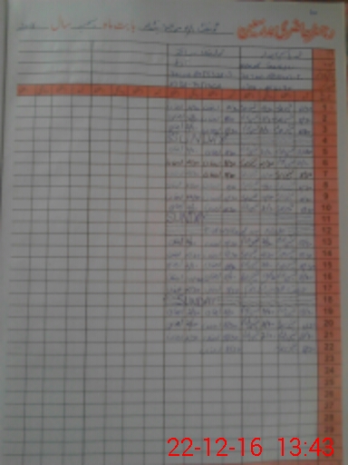| CNIC | Full Name | Designation | R/C | Absence During Last Calender Month |