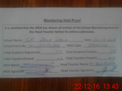 | EMIS Code: 39210178 | Name of School: GPS JAND WALA PO PAKPATTAN | |||