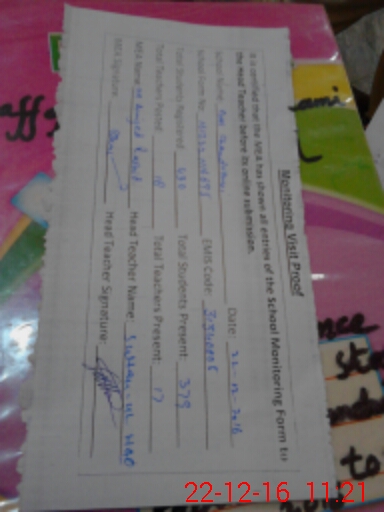 | Certified that this School was Inspected by the Undersigned MEA/DMO Today and the Information Stated Above is as Per Record. | |||||