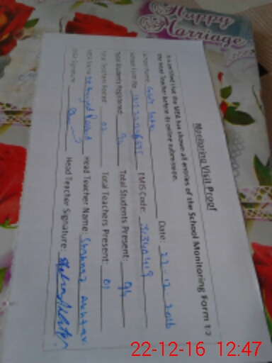 | Attendance Register | Head Teacher | MEA with School | Visit Proof |