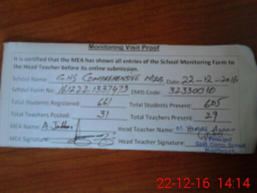 | EMIS Code: 32330010 | Name of School: GHS COMPREHENSIVE MUZAFFARGARH | |||