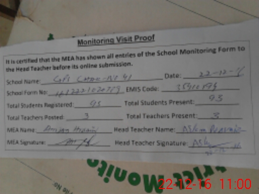 | EMIS Code: 35410194 | Name of School: GPS CHAK NO 41 | |||