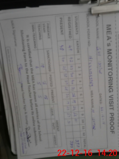 | Certified that this School was Inspected by the Undersigned MEA/DMO Today and the Information Stated Above is as Per Record. | |||||