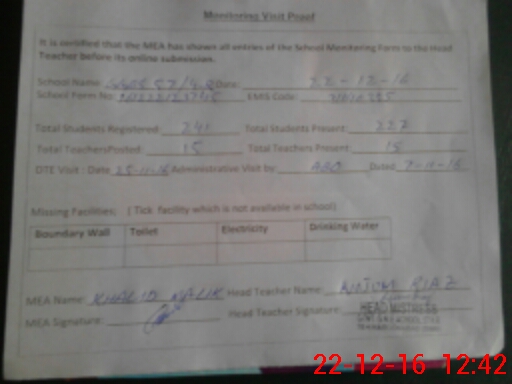 | Certified that this School was Inspected by the Undersigned MEA/DMO Today and the Information Stated Above is as Per Record. | |||||