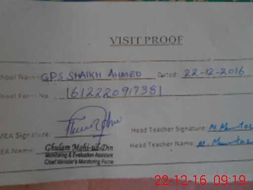 | EMIS Code: 38210458 | Name of School: GPS SHEIKH AHMAD | |||