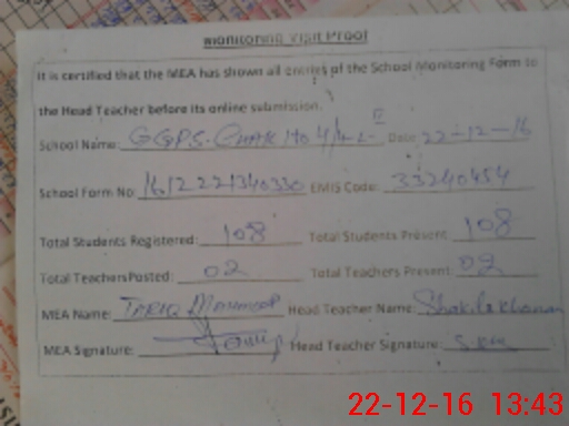 | Certified that this School was Inspected by the Undersigned MEA/DMO Today and the Information Stated Above is as Per Record. | |||||