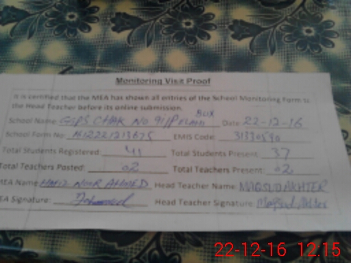 | Certified that this School was Inspected by the Undersigned MEA/DMO Today and the Information Stated Above is as Per Record. | |||||