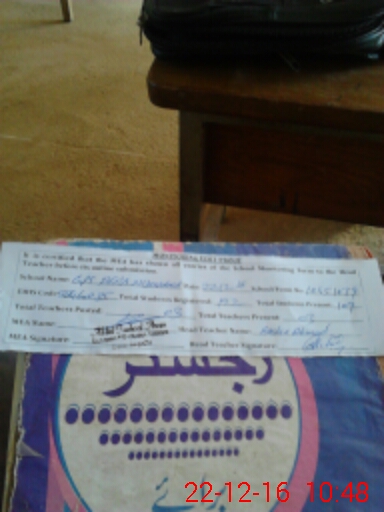 | Attendance Register | Head Teacher | MEA with School | Visit Proof |