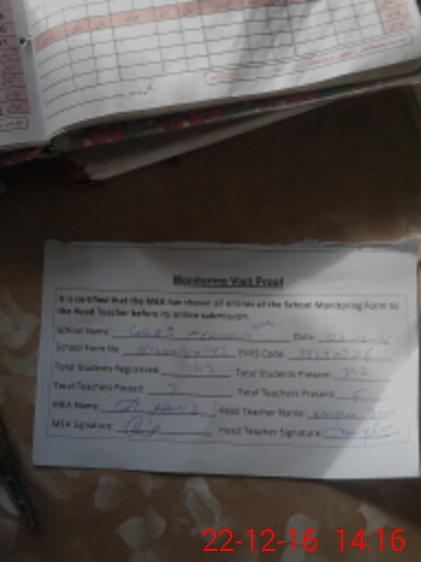 | Attendance Register | Head Teacher | MEA with School | Visit Proof |