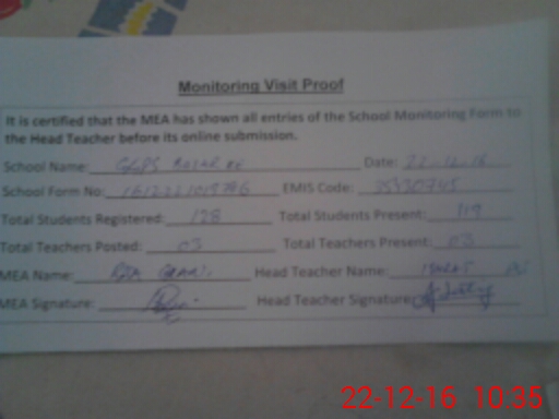 | Attendance Register | Head Teacher | MEA with School | Visit Proof |