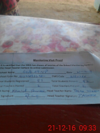 | Attendance Register | Head Teacher | MEA with School | Visit Proof |