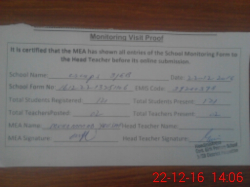 | Certified that this School was Inspected by the Undersigned MEA/DMO Today and the Information Stated Above is as Per Record. | |||||
