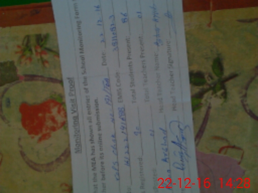 | Attendance Register | Head Teacher | MEA with School | Visit Proof |