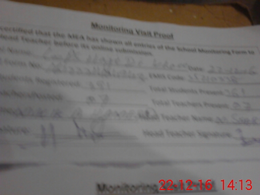 | Attendance Register | Head Teacher | MEA with School | Visit Proof |