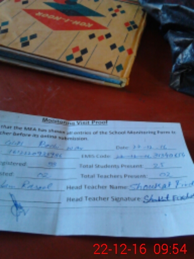 | Attendance Register | Head Teacher | MEA with School | Visit Proof |