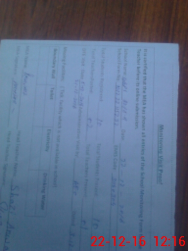 | Certified that this School was Inspected by the Undersigned MEA/DMO Today and the Information Stated Above is as Per Record. | |||||