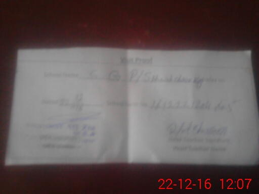 | Total no. of Classrooms: 2 No. of Classrooms Used for Teaching: 1 No. of Classrooms Storing Old Furniture, FTBs, etc: 0Comments if Any: ONE CLASS ROOM RIPER ABLE NOT ROOF |